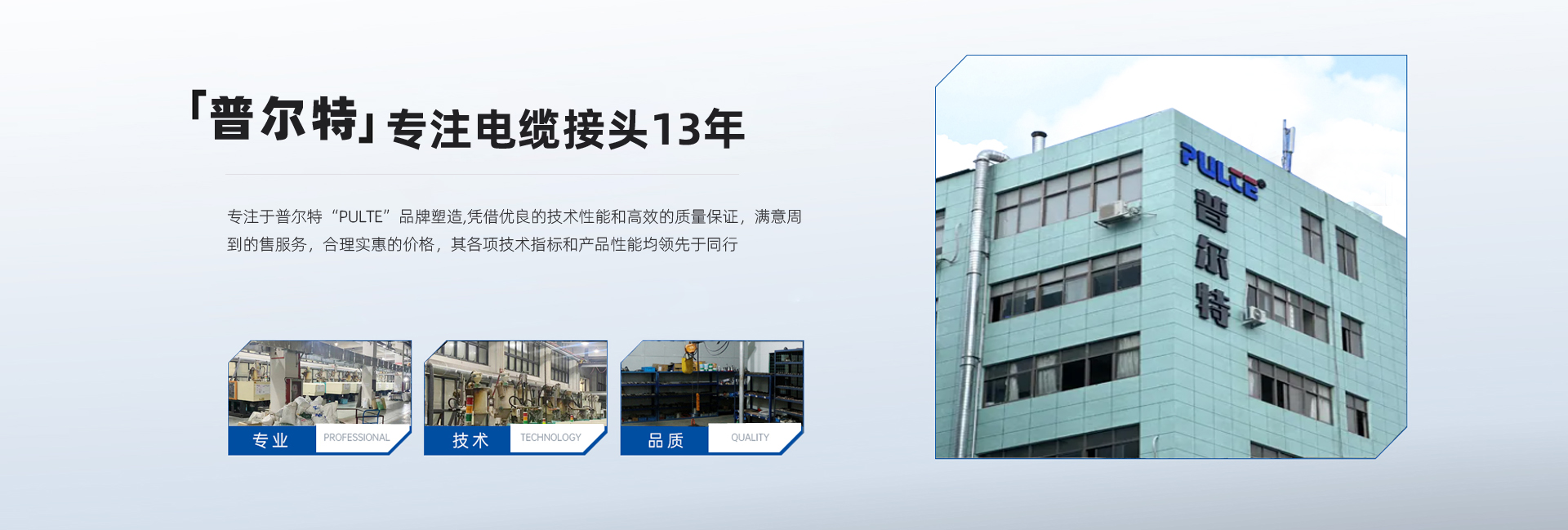 普爾特電氣科技(溫州)有限公司是一家專業(yè)生產(chǎn)電纜接頭,防水接線盒的專業(yè)廠家,它誕生在"中國電器之都"柳市鎮(zhèn),是一家集研發(fā)、生產(chǎn)、銷售于一體的專業(yè)化現(xiàn)代企業(yè)。 專注于普爾特“PULTE”品牌塑造,憑借優(yōu)良的技術(shù)性能和高效的質(zhì)量保證,滿意周到的售服務(wù),合理實(shí)惠的價(jià)格,其各項(xiàng)技術(shù)指標(biāo)和產(chǎn)品性能均領(lǐng)先于同行,廣泛應(yīng)用于接線盒、配電柜、通訊設(shè)備、儀器儀表、醫(yī)療器械、機(jī)床機(jī)械等多個(gè)領(lǐng)域;不斷推陳出新,研發(fā)新品,形成多系列多品種的防水電纜接頭,防水接線盒,堵塞件,電纜接頭配件,軟管防水接頭等產(chǎn)品,有效拓寬了企業(yè)的市場渠道,增強(qiáng)了市場競爭力,為擴(kuò)大企業(yè)規(guī)模奠定了基礎(chǔ)。       公司技術(shù)力量雄厚,由一批行業(yè)資深人士共同組建,在電纜接頭制造領(lǐng)域具有領(lǐng)先地位。 我們擁有完善的質(zhì)量保證體系和豐富的設(shè)計(jì)制造經(jīng)驗(yàn),以產(chǎn)品的高品質(zhì)、高可靠性廣泛應(yīng)用于各個(gè)行業(yè),為全球需求者提供專業(yè)、高質(zhì)量的電纜配套產(chǎn)品,相信在我們完整的系列產(chǎn)品中一定能有一款滿足您的需求。      公司始終堅(jiān)持“為顧客創(chuàng)造滿意產(chǎn)品”的經(jīng)營理念,以質(zhì)量占領(lǐng)市場,以科技塑造品牌,不斷實(shí)現(xiàn)企業(yè)的持續(xù)向前發(fā)展。本公司可以根據(jù)客戶的要求,進(jìn)行模具開發(fā)和生產(chǎn)。竭誠歡迎國內(nèi)外新老客戶前來公司考察及洽談合作,共同創(chuàng)造美好的明天。 ...